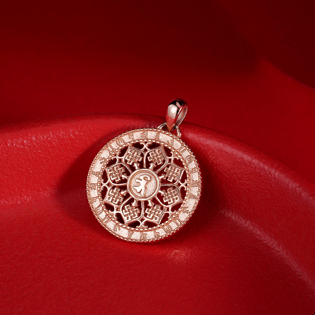 另外,象徵佛門八寶中的盤長結著無限的吉祥與富貴。這種結飾圖案沒有開端和結尾,頭尾相連,一個完整的循環,寓意著幸福與和平的永恆流轉。其結構由兩個卍字的交叉盤結組成,表現出佛心的廣大與佛智的圓滿。這種形狀的設計不僅如此,更代表了對吉祥吉祥的系列相傳,讓每位佩戴者得到四方佛法的庇佑。