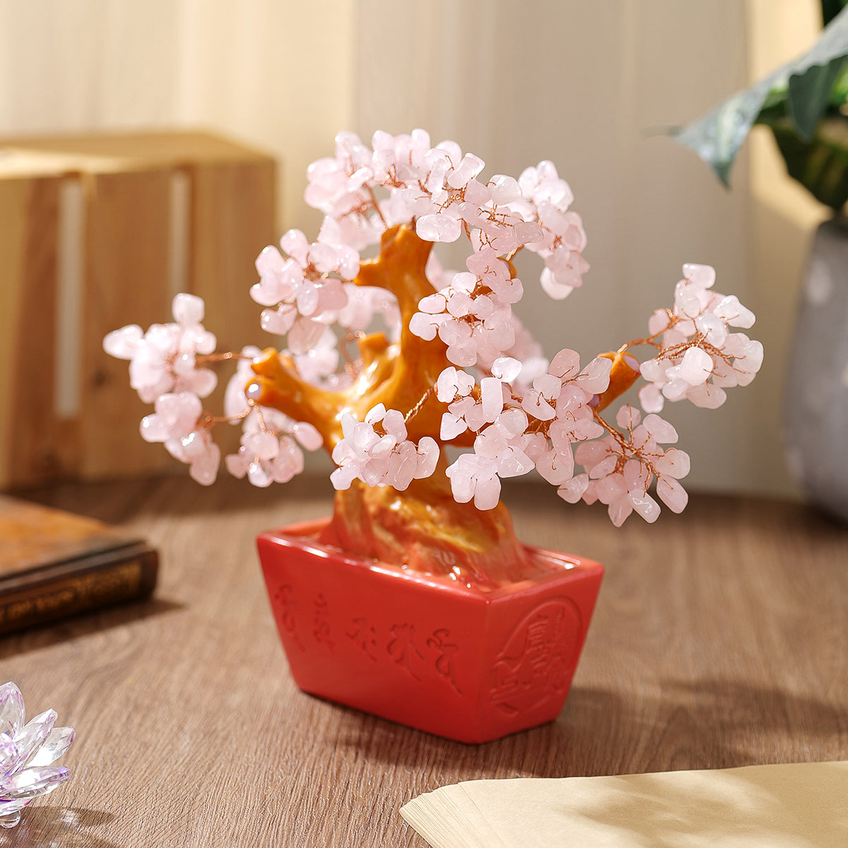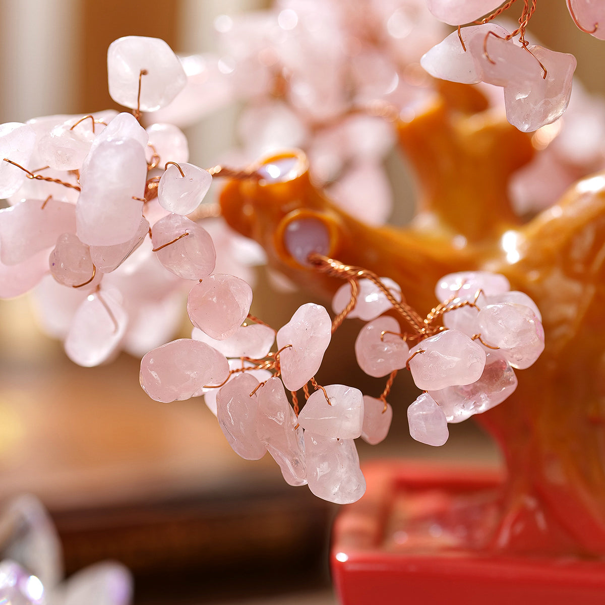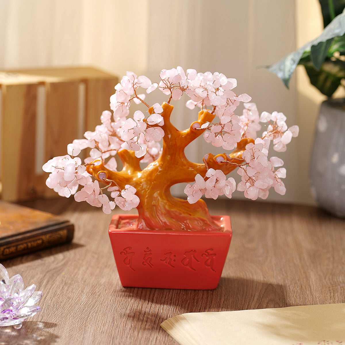 招財人緣樹由精美的粉晶組成,粉晶修善的能量著作稱,能促進愛情與和諧,特別適合改善人際關係、增強桃花運,而且底部刻有五姓財神的咒輪,這些咒語象徵著五位護法神的力量,在生活中隨時幫助他們的庇佑。玄學上透過神明的力量能改善財運,增益財富,加強整體運勢。