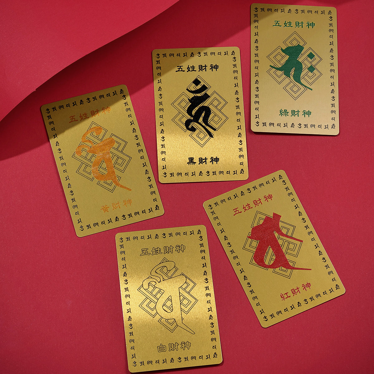 -五姓財神咒輪:每張預計都設計了不同的五姓財神咒輪,象徵著五位守護神的神的力量,讓你在日常生活中隨時受到他們的庇佑。