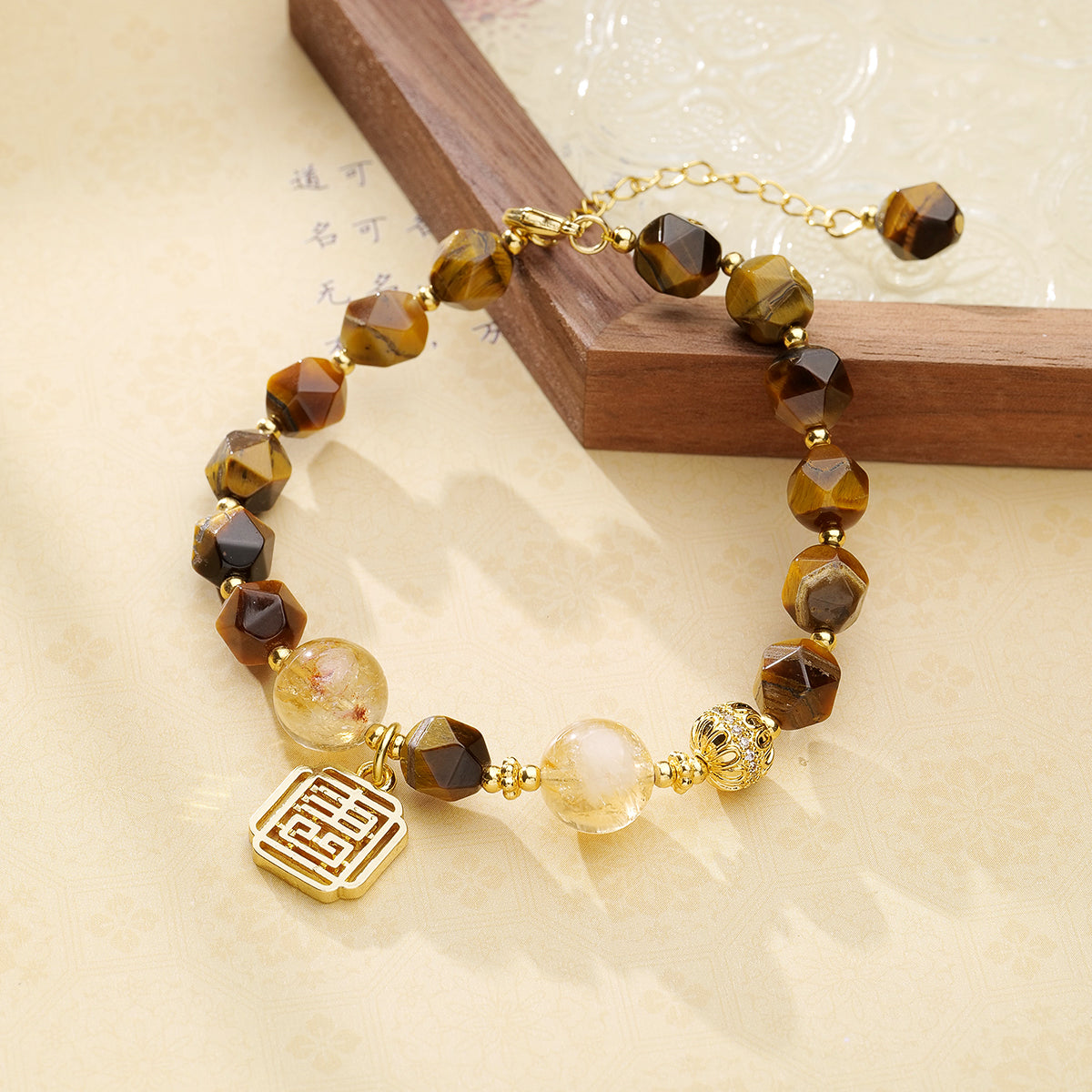 金運飛揚手鍊玄學上這款手鍊由黃虎石和黃塔晶安組成,共同擁有強大的靈性和財富增強的能量。
