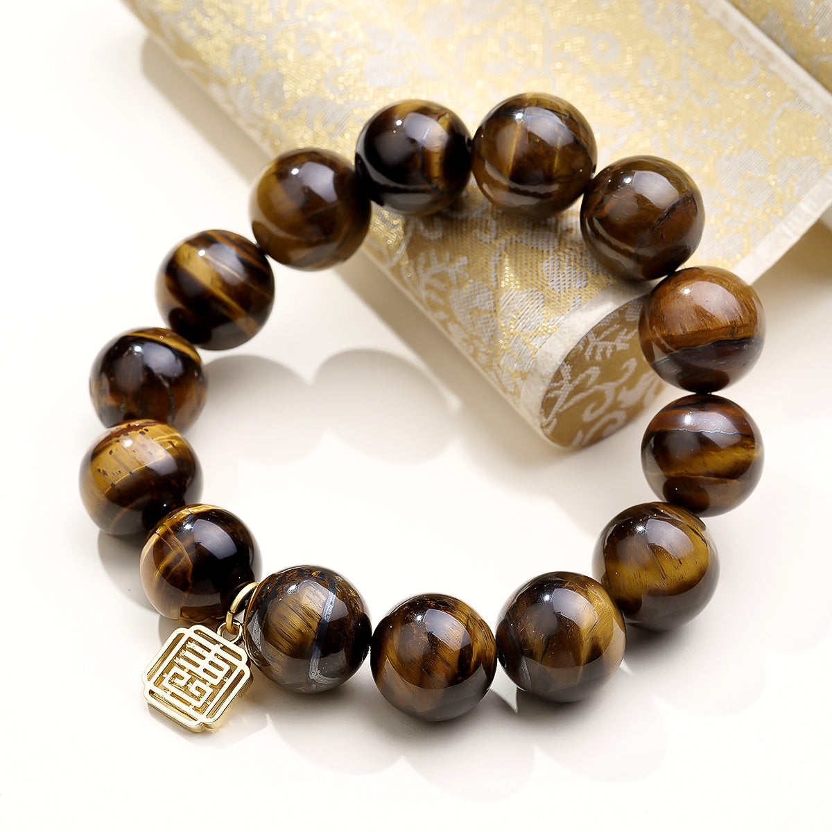 黃虎眼石(Yellow Tiger's Eye)是一種強力水晶,修習招財、增強自信與提升行動力而聞名。每粒直徑16毫米的黃虎眼石具有金黃澤,象徵財富,並具備備用靈性功效,特別適合創業家、職場人士及需要勇氣的朋友佩戴。